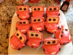 I made red velvet cupcakes decorated as Lightning McQueen for the kiddos and just regular decorated cupcakes for adults. I also made cake balls in the shape of Lightning McQueen that went on a block of rice krispy as part of the favor bags for the kiddos. The adults got some regular decorated cake balls as thank you desserts.